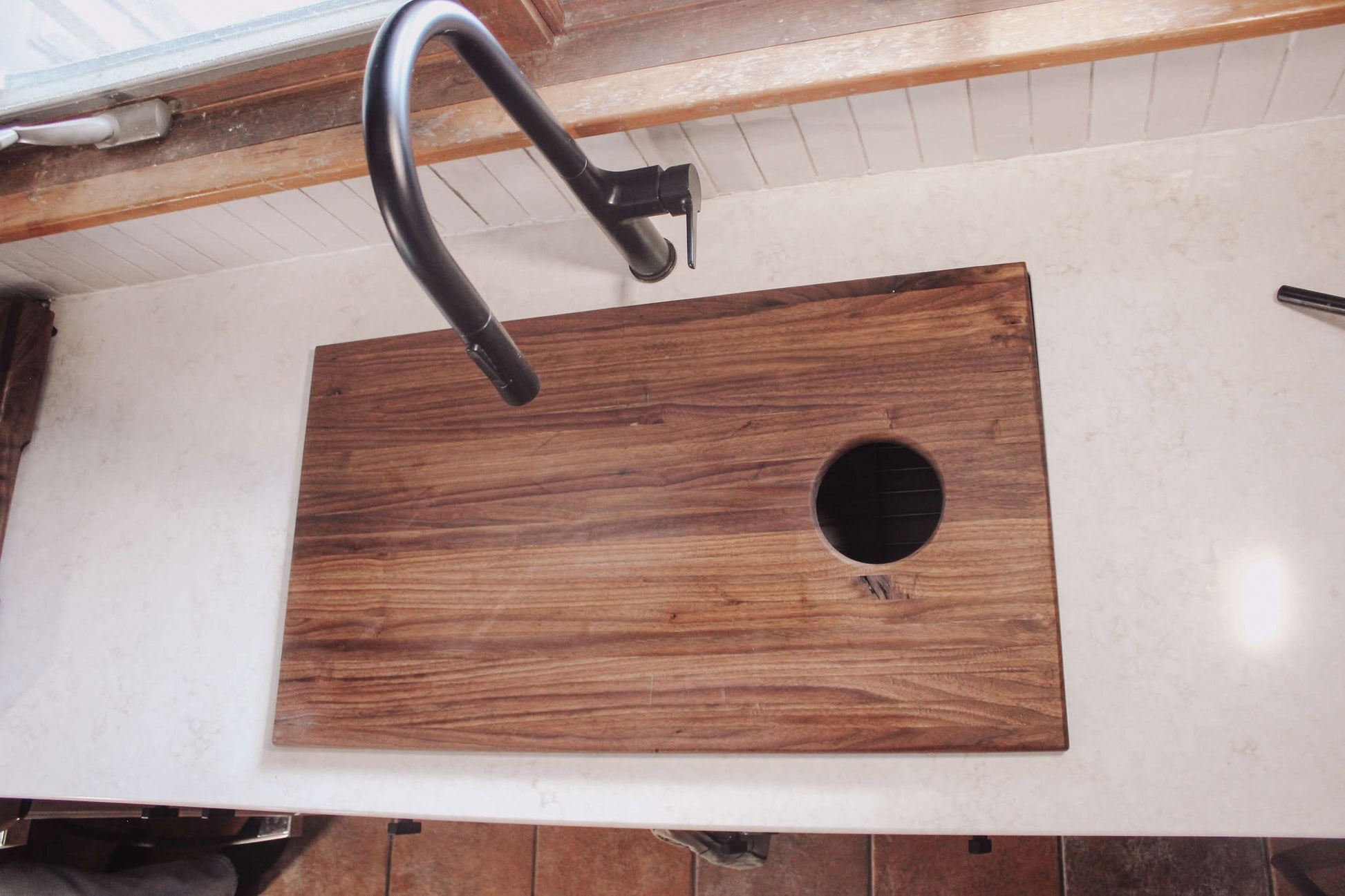 Walnut Sink Cover with Hole